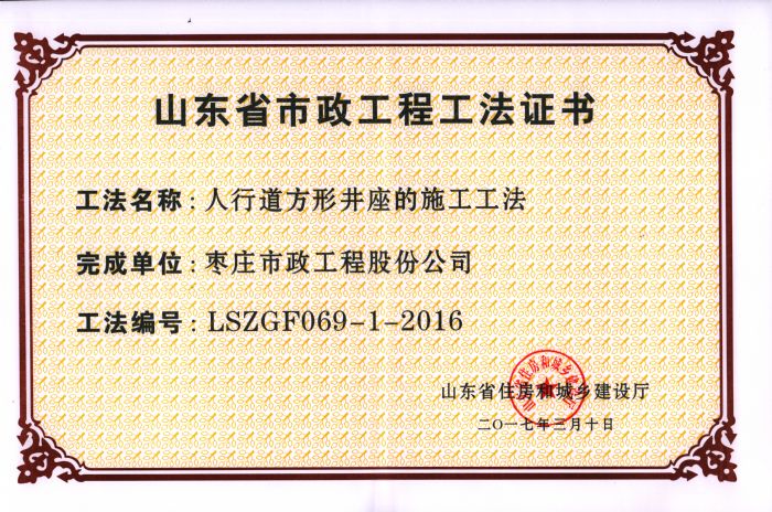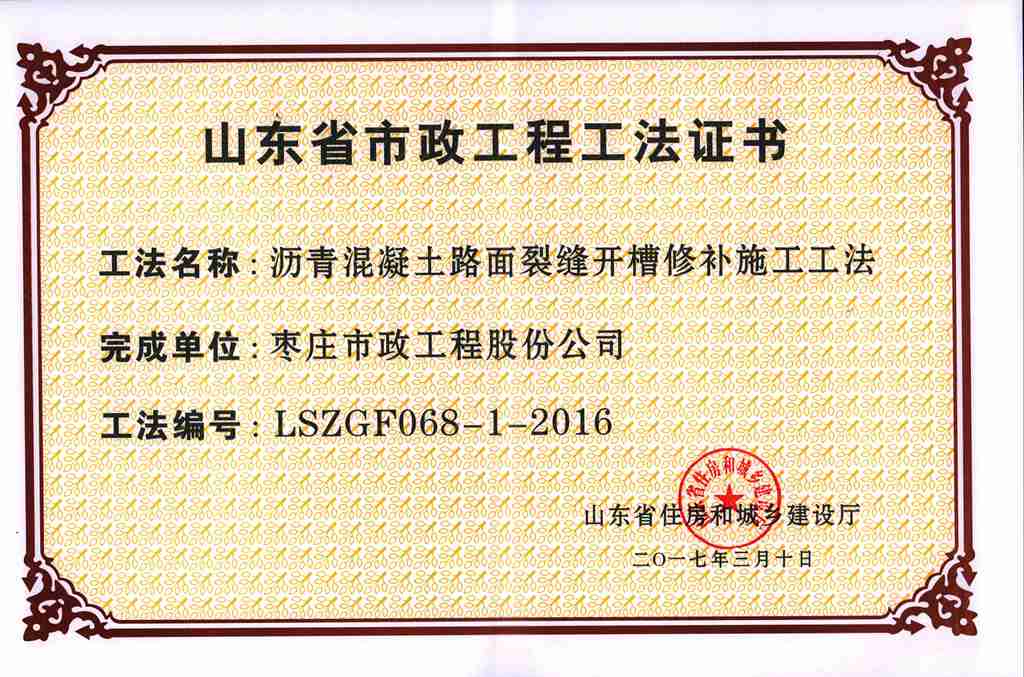 近日,從山東省住房和城鄉建設廳傳來喜訊,我公司申報的《瀝青混凝土路面裂縫開槽修補施工工法》和《人行道方形井座的施工工法》,經山東省住房和城鄉建設廳工法評審委員會專家審核評審,順利獲批山東省省級工法。