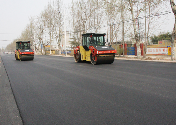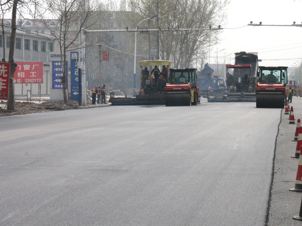 3月31日,在陽春二月和煦的陽光下,解放南路施工現場一片熱火朝天的景象。在施工圍擋區,內兩臺攤鋪機并駕齊驅、交錯前進。在攤鋪機身后兩臺雙鋼輪壓路機往來碾壓、有條不紊。下午,隨著解放南路(十里泉至嶧城界段)西側最后一板瀝青結構層攤鋪碾壓工序的完成,解放南路道路維修工程全部結束,解放路道路維修工程階段性完成。